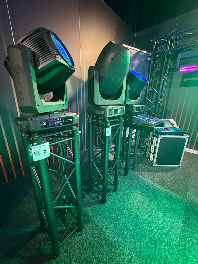 Dans le domaine de l’éclairage, Triton Blue a impressionné avec des solutions alliant puissance, fiabilité et créativité. Parmi celles-ci se distinguaient la barre LED Solar 480, la lyre asservie Python 100, les projecteurs Halley 450 et Helios 700, ainsi que les contrôleurs DMX des séries Atlas 1024 et Atlas 2560, mettant en avant leur facilité d’intégration dans tous types de configurations et d’environnements professionnels. Ces solutions ont permis aux visiteurs de constater directement comment la technologie Triton Blue peut transformer n’importe quel espace en une expérience visuelle unique.